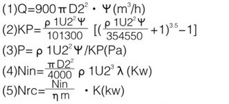 式中:Q-流量(m3/h)  P-全壓(Pa) Nre-所需功率(kw)