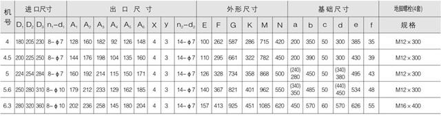 本風(fēng)機(jī)為單吸入式,通常有NO4、4.5、55.6、6.3、7.1、89、10、11.212.5、141613個機(jī)號。