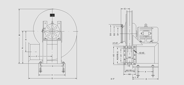 風(fēng)機(jī)的出口位置以機(jī)殼的出口表示?!白蟆?、“右”均可制成0°、45°、90°、135°、180°、225°共六種角度。